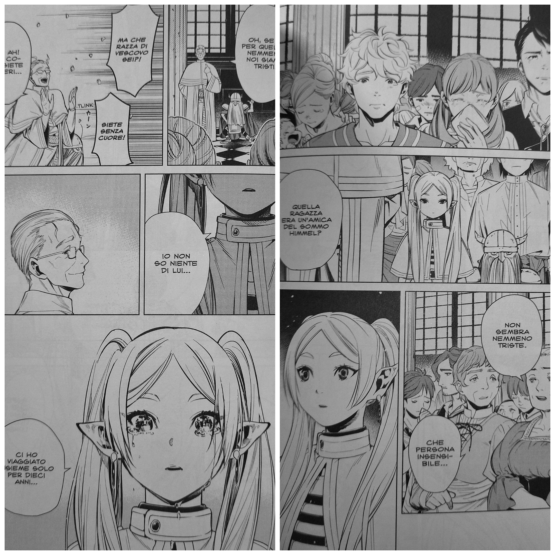 Accidentalmente un po' in tema, quindi, con questo post voglio iniziare a rivisitare Frieren, prima che io lo continui con i nuovi volumi che ho comprato e finisca per essere veramente arretrata. Dico che è un po' in tema perché il capitolo 1 di Frieren parla, al di là di tutto, effettivamente del tempo; il tempo che passa, i decenni che passano (e, di questo passo, ormai sarò letteralmente anche io in questa situazione), e i ricordi che questo flusso si porta appresso. Nel mio caso, ricordo che questo volumetto l'ho iniziato la notte nel letto, prima di dormire (...praticamente alla stessa ora di come mi trovo adesso a scrivere qui, ma dettagli), e con in parte il sonno in bocca credo avesse fatto un certo effetto unico, per come si sviluppa.