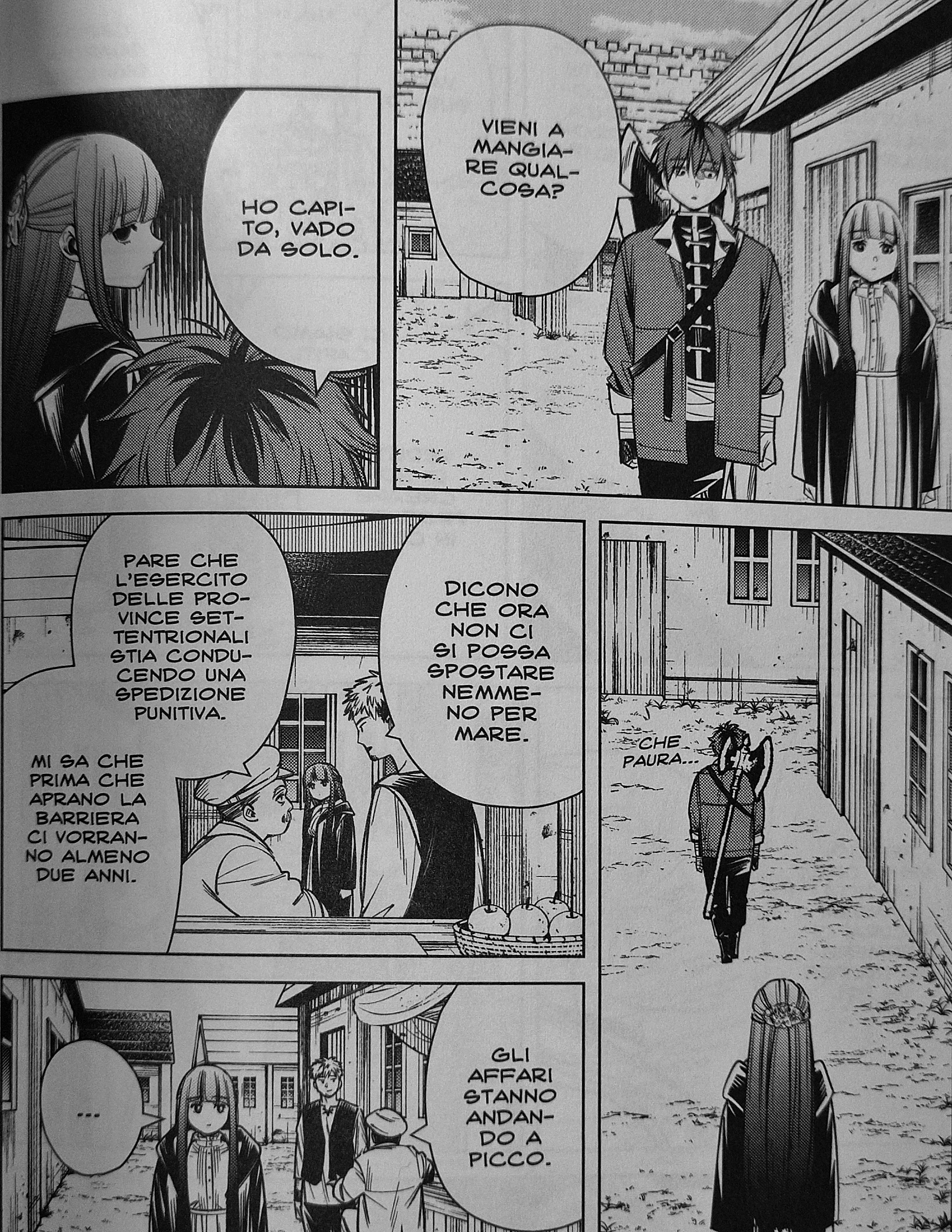 Una piccola nota va scritta in favore di Frieren, però, che, per quante idee discutibili avrà, delle cose giuste le dice: com'è possibile che Fern, rispetto a quando era più piccola, sia diventata così ruvida ed aspra?! Parole di sdegno così come ne ha avute per ..., non ne ha mai avute per niente e nessuno... ma sarà stata mica Frieren stessa a contagiarle l'elfismo???