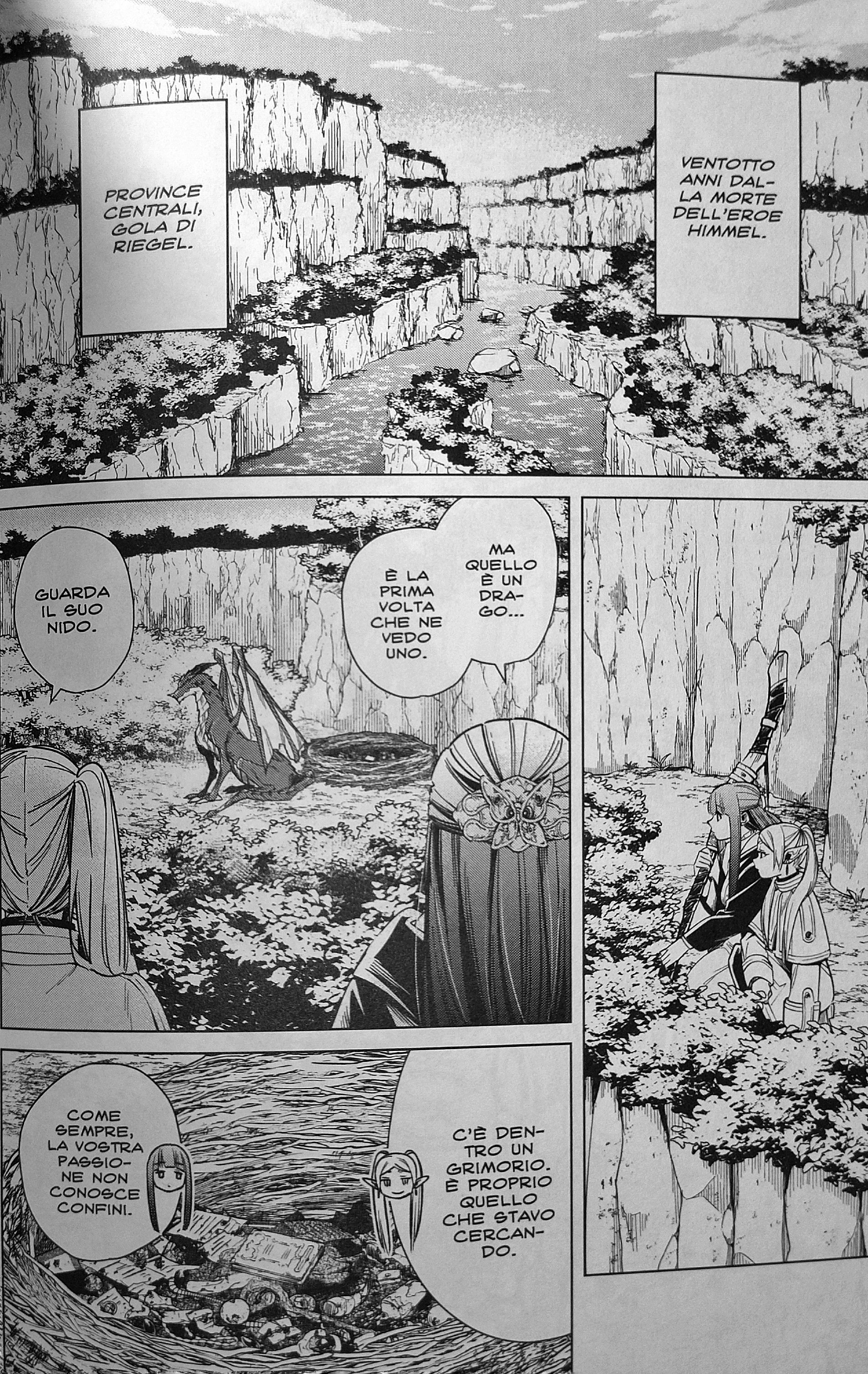 I nostri eroi si trovano nuovamente a non avanzare più di tanto, nel tempo di poche pagine, e quindi anche questo capitolo offre più che altro solo delle riflessioni interessanti, ma nulla di super potente... O forse si, perché stranamente la mattina Frieren si sveglia presto, e Fern rimane sbigottita; ma sarà semplicemente lo stare fuori nella natura, anziché dentro in una bella casa, che non l'ha fatta dormire al meglio, secondo me. Fern ha anche fatto pace con Stark, ma ha qualche problema di linguaggio per cui tende a chiamarlo "signore" nonostante siano praticamente coetanei... e, se lui le chiede di non farlo, le escono solo toni aspri ed imperativi... lasciamo stare!