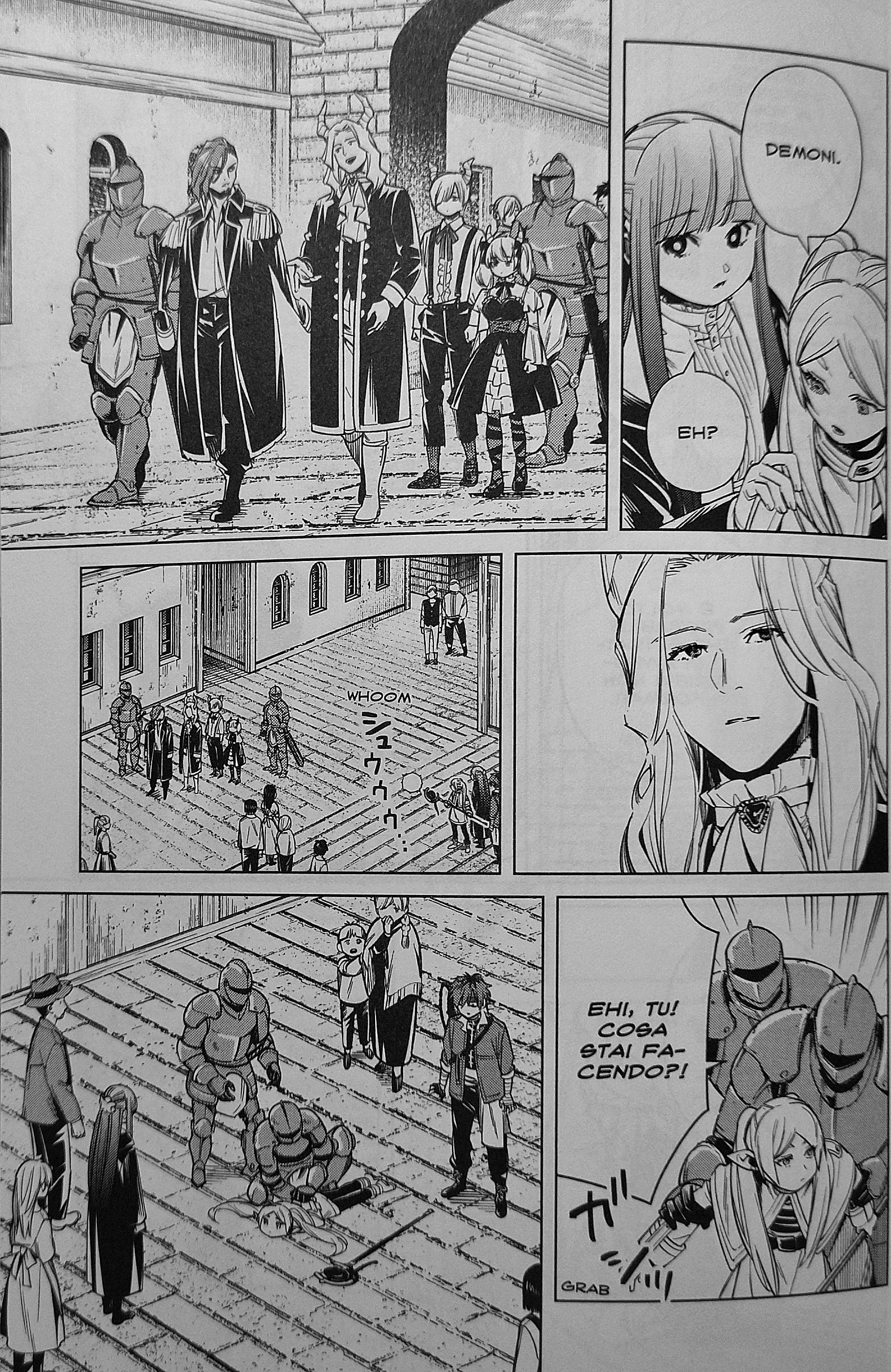 Quando Lügner afferra le intenzioni di Stark, e lo attacca, in realtà lui riesce a resistere inizialmente bene... quindi si riconferma più bravo di quello che pare, direi. Proprio nel momento in cui si trova alle strette, per sua fortuna, Fern riesce ad entrare di sorpresa come evidentemente programmato — per giunta, non so come, ma non facendosi percepire da Linie, che come abilità particolare ha questa cosa di riuscire a sentire le presenze magiche — e questo fa incazzare alquanto i demoni... Nel voler salvare il conte, però, la maga e l'eroe si devono ritirare, anziché continuare lo scontro, e i due demoni ne approfittano per pianificare.