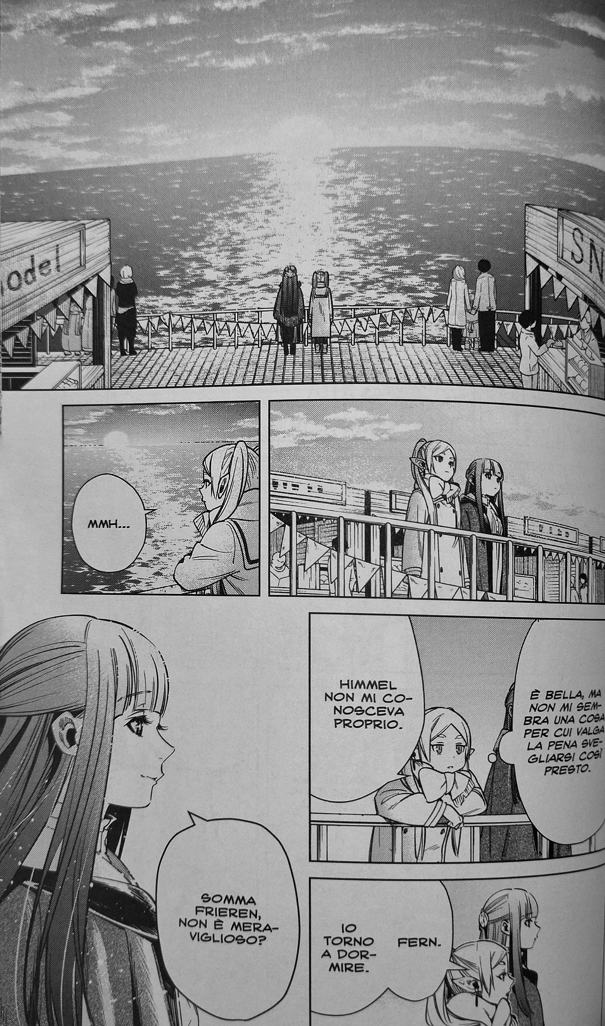 Rimessesi in viaggio, la maga somma Frieren ha in mente una prossima tappa che, per la prima volta in queste pagine, alza per qualche attimo la posta in gioco: il prossimo villaggio sperduto dove devono andare custodisce, suo malgrado, un demone pericoloso, il cui sigillo che lo teneva fermo e innocuo è in greve procinto di sciogliersi (zio pera, ma lo hanno fatto di ghiaccio?)... e bisogna prendere provvedimenti, insomma.